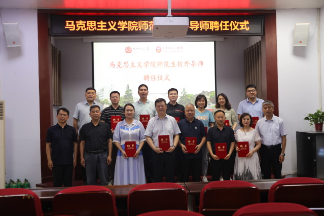 为进一步提高师范生培养质量,完善校内外导师协同育人长效机制。6月14日,马克思主义学院在平原楼108举行师范生校外导师聘任仪式。教务处处长梁存良,新乡市教育局思政科科长张振磊,学院党委书记、院长蒋占峰,来自河南师大附属中学、新乡市第一中学等50位受聘导师代表参加。仪式由副院长曲嘉主持。