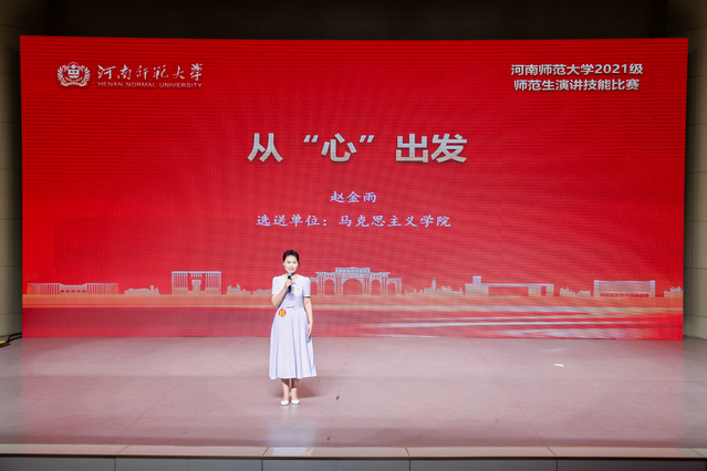 演讲比赛环节,以“弘扬教育家精神,争做四有好老师”为主题,来自师范专业学院(部)的14名2021级师范生参加比赛,我院2021级思想政治教育专业学生赵金雨获得特等奖。