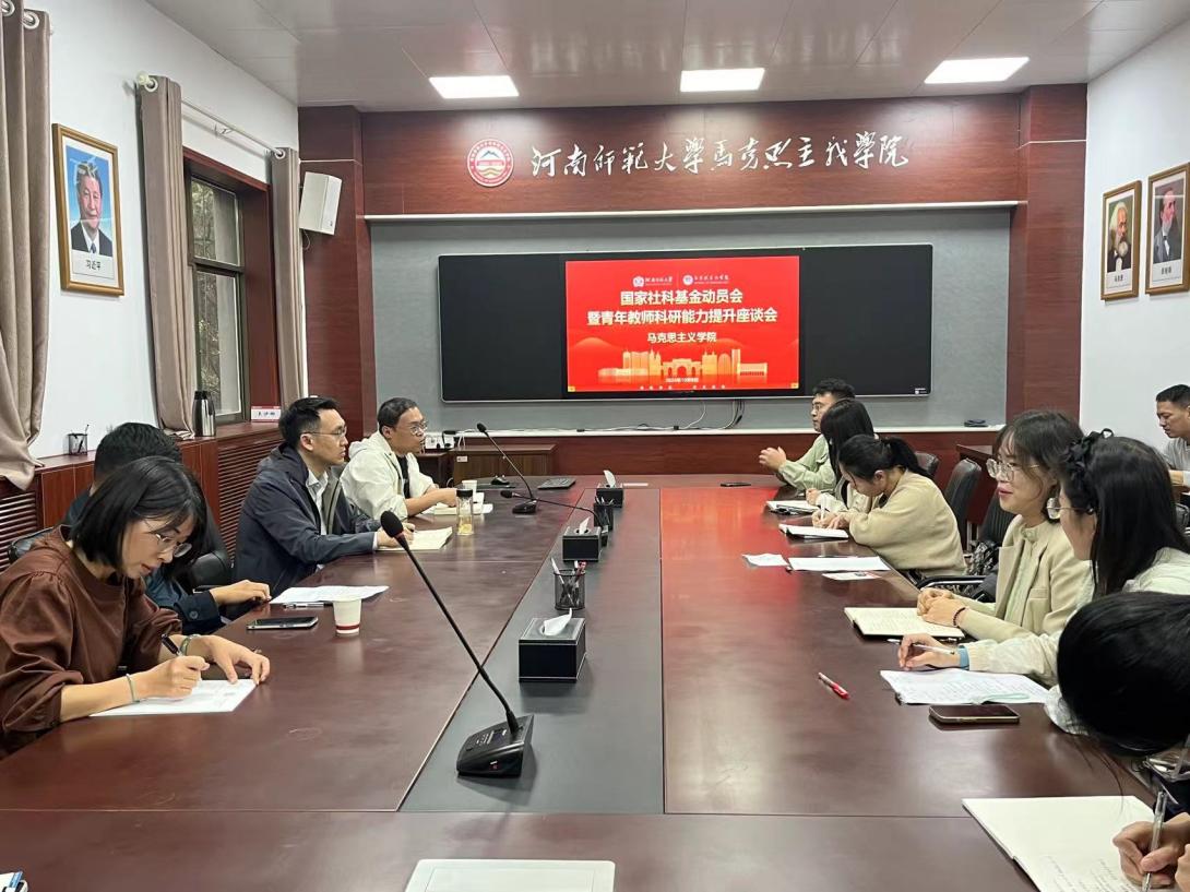 10月8日,马克思主义学院举办2024年国家社科基金动员会暨青年教师科研能力提升座谈会,会议在平原楼201会议室举行。马克思主义学院全体青年教师参加。本次会议由马克思主义学院副院长余保刚教授主持。