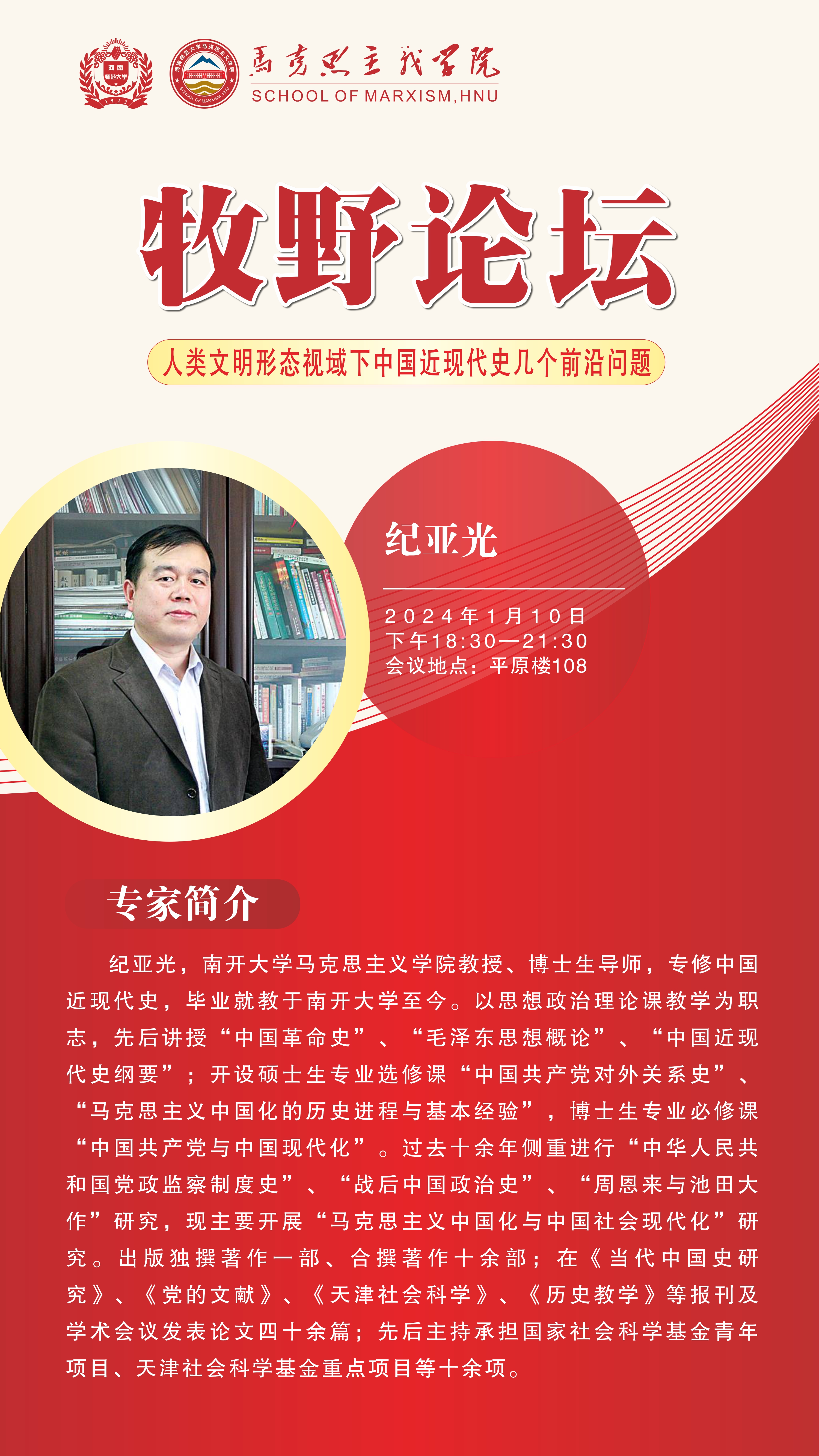 马克思主义牧野论坛 南开大学纪亚光教授讲学通知