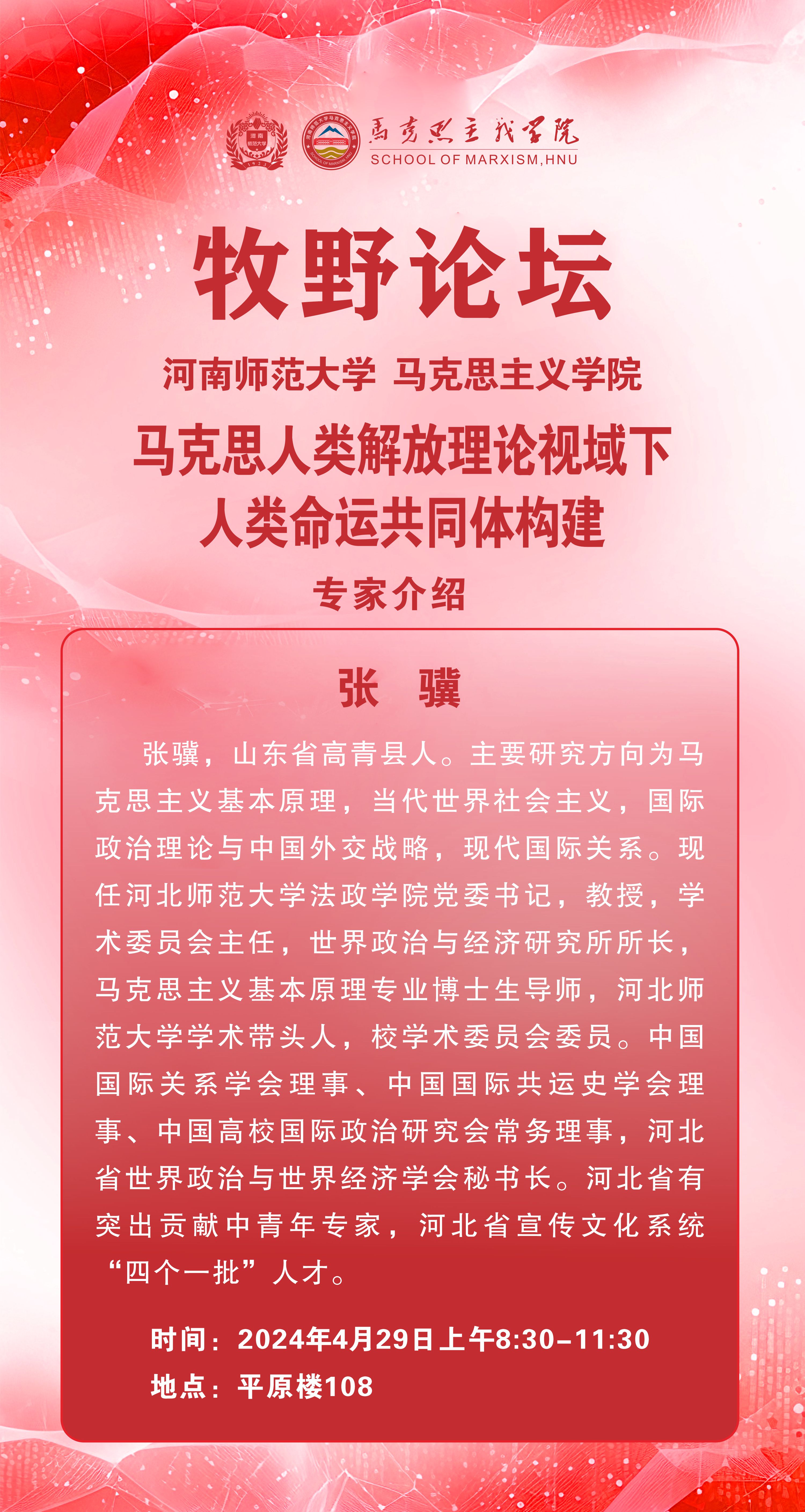 马克思主义牧野论坛 河北师范大学张骥教授讲学通知