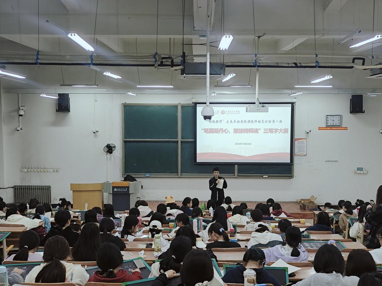 为大力弘扬和践行教育家精神,持续深化师范生“三字”书写素养,进一步加强师范生职业技能的培养,提高师范类人才的教育教学能力,弘扬中国传统书法艺术,全面提高学生素质,10月26日,马克思主义学院于求实中楼103举办“笔墨凝丹心,撇捺铸师魂”三笔字大赛。
