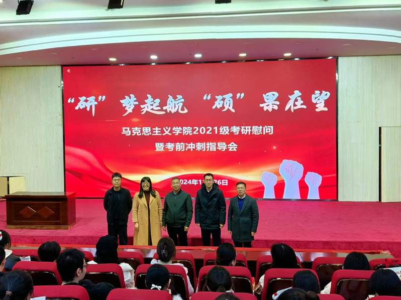 为缓解考研学子备考压力,鼓舞士气,坚定信心,11月26日,马克思主义学院于东区思政平台开展“研梦起航 硕果在望”考研慰问暨考前冲刺指导会。活动由2021级辅导员主持,学院领导班子及全体考研学生参加。