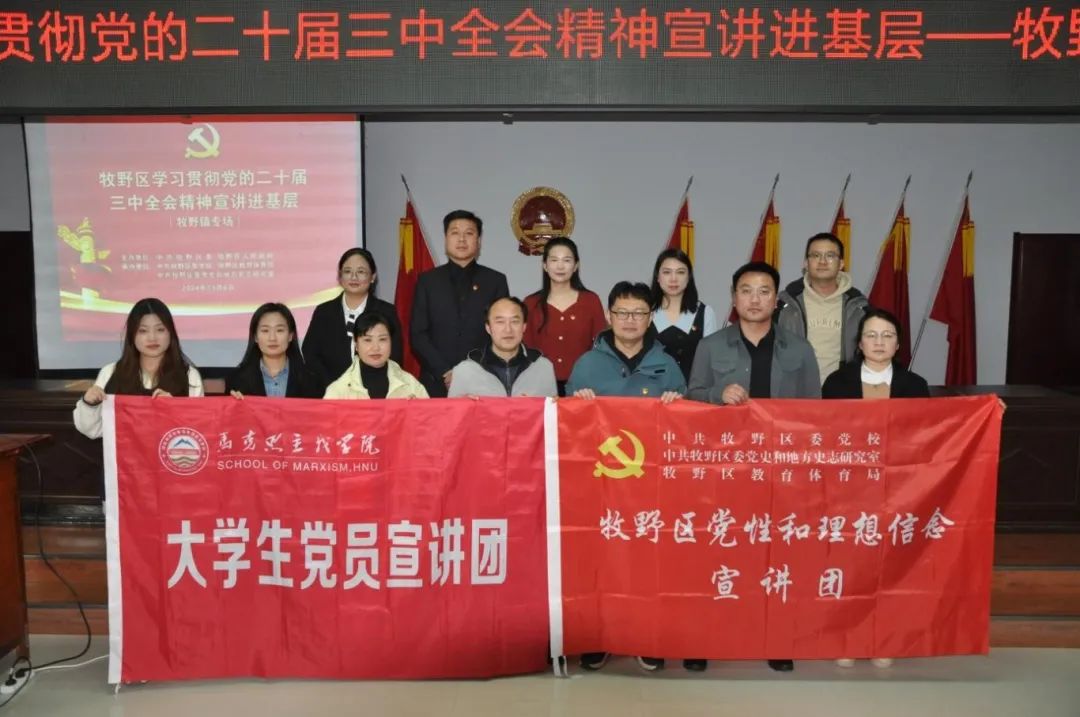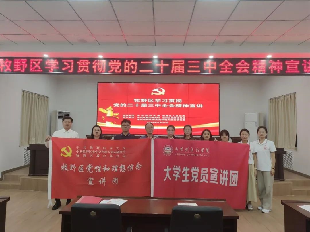 理论知识走进基层,全会精神滋润人心。为深入学习贯彻党的二十届三中全会精神,推动全会精神“飞入寻常百姓家”,9月29日——11月22日,大学生党员宣讲团联合牧野区党性和理想信念宣讲团走进牧野区委政府、牧野镇政府、周边社区、企事业单位开展以学习贯彻党的二十届三中全会精神为主题的巡回宣讲活动。