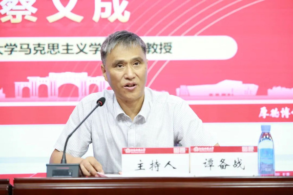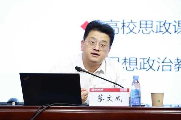 蔡文成从马克思主义理论学科的创立背景、建设、发展成就出发,提出建强马克思主义理论学科必须要树立学科意识、筑牢育人意识,推动其内涵式发展。他提出,当前的教育生态为马克思主义理论学科发展带来的机遇与挑战并存,教师们要应对当下,必须深刻理会学科建设具体要求,多关注国情和世情,重视阅读马克思主义经典原著。结合实际,他鼓励思政课教师们用习近平新时代中国特色社会主义思想铸魂育人,加强马克思主义理论学科和马克思主义学院建设。