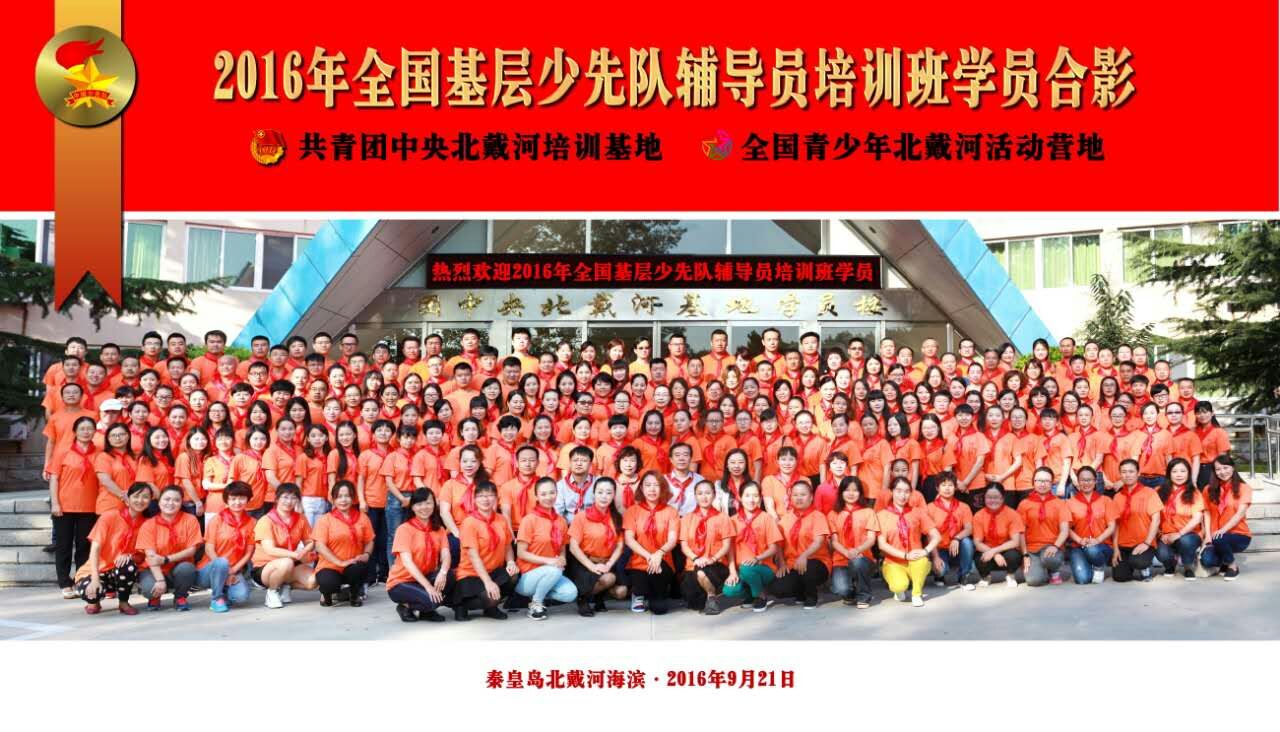 2016年全国基层少先队辅导员培训班是团中央主办的第二期少先队辅导员培训班,培训时间为2016年9月17日至9月22日,共计6天,培训地点位于共青团中央北戴河培训基地。本期培训班的学员来自河南、山东、内蒙古、北京、上海、吉林、贵州、陕西、云南、江西等省市,共计225人。此次培训邀请了中国少先队工作学会副会长华耀国、柯英,原辅导员杂志社社长缪力,中国青年政治学院心理研究所所长田万生,中国少先队工作学会理事郑宁远等多名全国知名的少先队工作专家为学员们作了生动、深刻、精彩的辅导讲座,并安排观摩了秦皇岛北戴河区育花路小学的少先队活动课。
