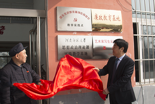 随后,吴金印、陈广文等共同为唐庄镇实践教学基地揭牌。在场领导为辉县市张村乡裴寨社区,孟庄镇南李庄社区,上八里镇回龙村,新乡县七里营镇刘庄村、龙泉村,小冀镇京华社区,获嘉县照镜镇楼村,凤泉区耿黄镇耿庄村等其余8个实践教学基地授牌。