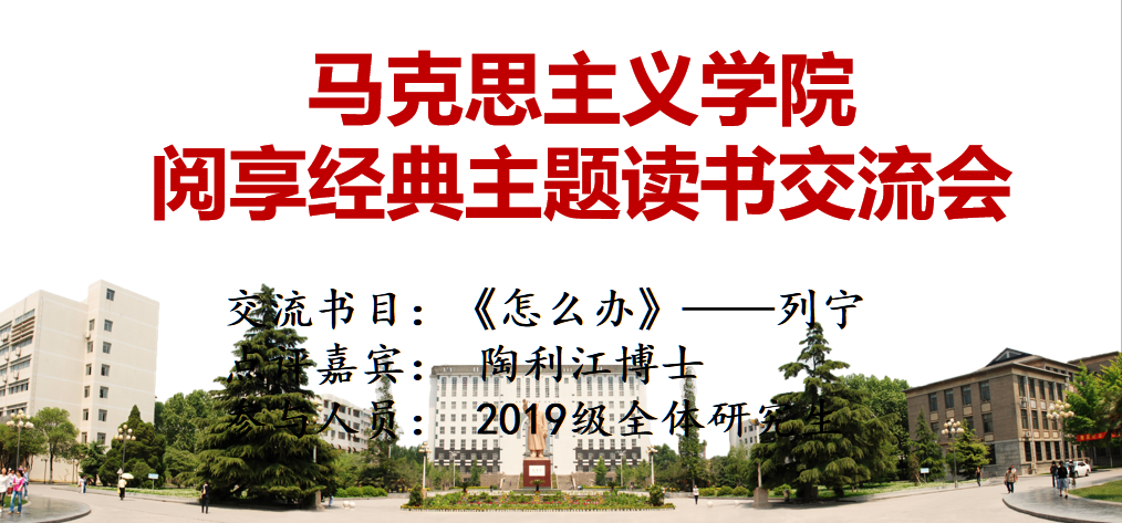 为进一步提高研究生的专业素养,增强科研能力,6月29日,马克思主义学院线上举办 “我读马列经典”主题读书交流活动。本次交流会讨论学习书目为列宁的《怎么办?(我们运动中的迫切问题)》,学院教师陶利江博士担任点评嘉宾,相关教师及2019级全体研究生参加了本期交流会。