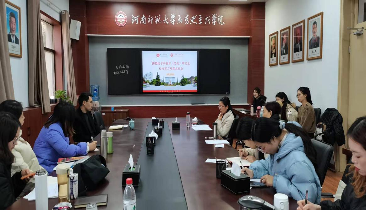 12月14日上午,马克思主义学院2020级学科教学(思政)专业研究生校内实习观摩总结会于平原楼201召开。会议邀请马克思主义学院副院长余保刚、红旗区进修学校中学与法治教研员张英、马克思主义学院教师王素萍作为评议人,马克思主义学院研究生办公室秘书赵梦宸主持会议。