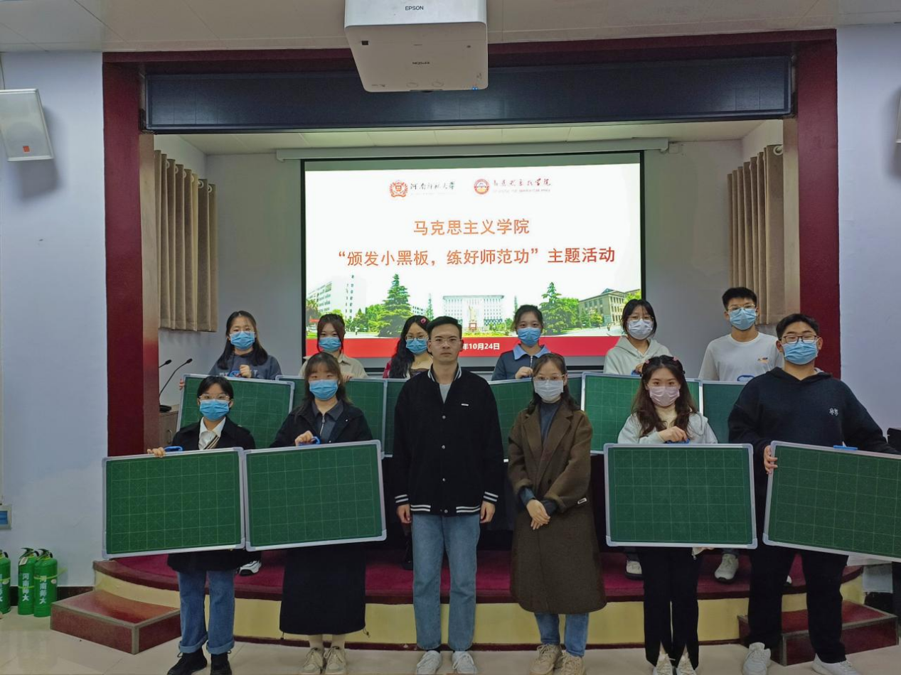 学高为师,身正为范。为提升师范生书写技能,提高师范生板书质量,10月24日,马克思主义学院于平原楼108举行“颁发小黑板,练好师范功”主题活动,年级辅导员及2022级全体师范生参与。