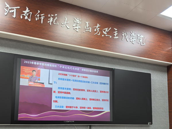 在第一阶段,参会教师们在线观看2025年春季学期河南省高校“纲要”课程第四次集体备课直播。来自郑州工程技术学院、河南科技学院、河南体育学院的刘兰兰、陈芳芳、马海杰三位老师分别就“纲要”课第十一专题“决定当代中国命运的关键一招”、第十二专题“建设社会主义现代化强国”、第十三专题“把握历史主动·坚定历史自信”进行说课展示。