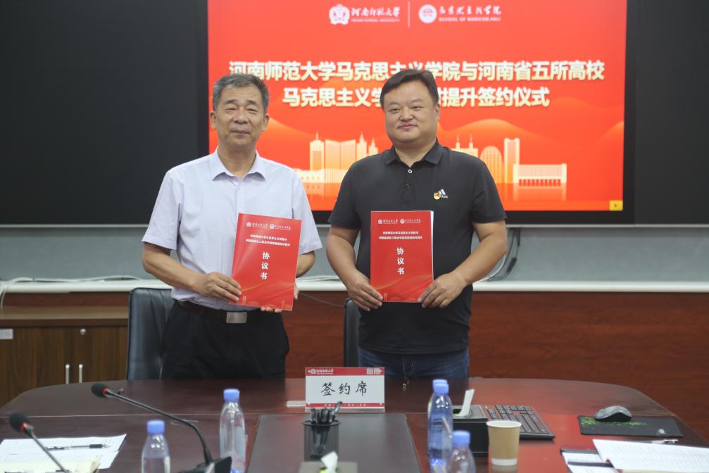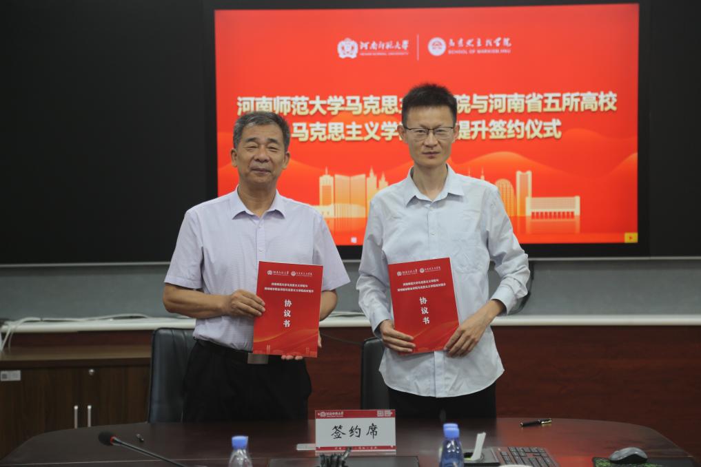 马克思主义学院党委书记、院长蒋占峰代表我校马院与五所高校马克思主义学院依次进行结对提升签约。结对提升学院代表、河南科技学院马克思主义学院副院长张希中表示,五所结对高校情谊深厚、目标一致,愿以此为契机,共商合作大计,共享合作资源,构建优势互补、联动发展共建共享的马院共同体,为全面加强马克思主义学院建设而共同奋斗。