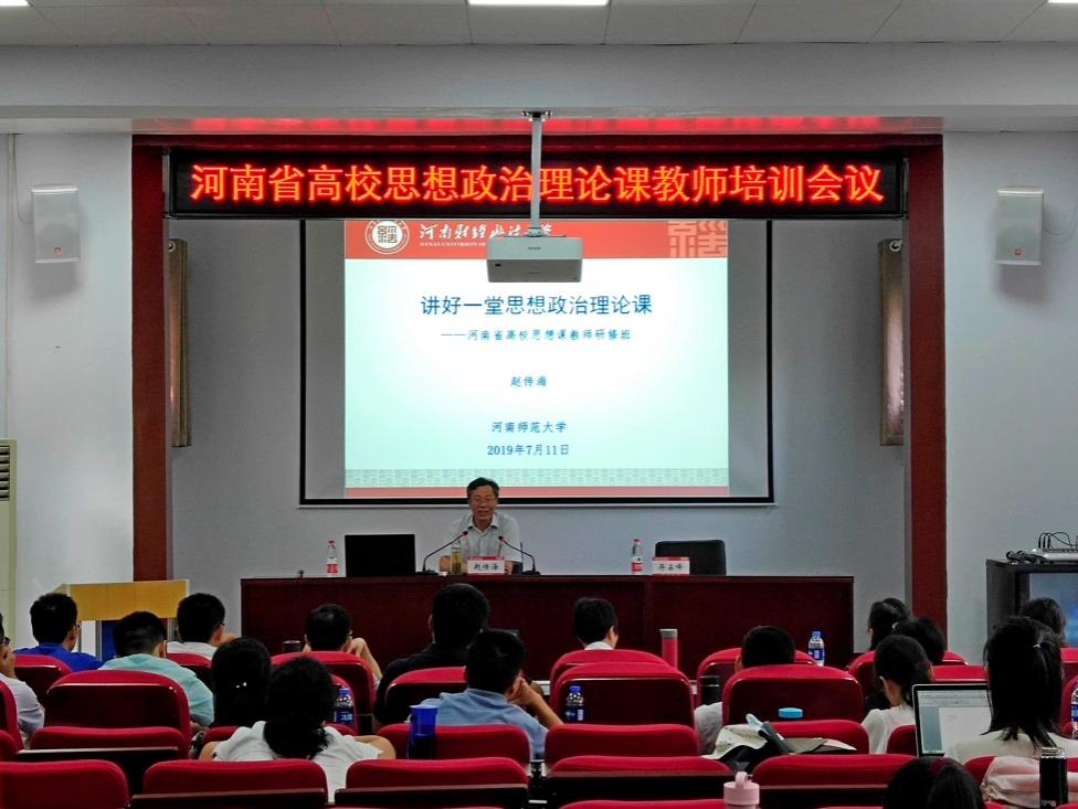 为深入学习贯彻习近平总书记在学校思想政治理论课教师座谈会上的重要讲话精神,深入实施“新时代高校思想政治理论课创优行动”,做好参加全国高校思想政治理论课教学展示活动准备。2019年7月10日12日,由中共河南省高校工委、省教育厅主办,全国高校思政课教师研修基地(伟德官网下载苹果版)承办的“河南省高校思想政治理论课教学展示选手培训会”在我校平原楼一楼报告厅举行。省教育厅思政处领导、省内30所高校的40思政课教师、我校部分教师近80人参加了本次培训会。