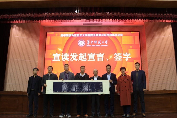 本次联席会由高等教育出版社和华中师范大学马克思主义学院联合主办,武汉大学、兰州大学、华东师范大学、吉林大学、东北师范大学及我校等全国70余所高校的马克思主义学院院长出席会议,签署了高等院校马克思主义学院院长联席会议发起宣言。