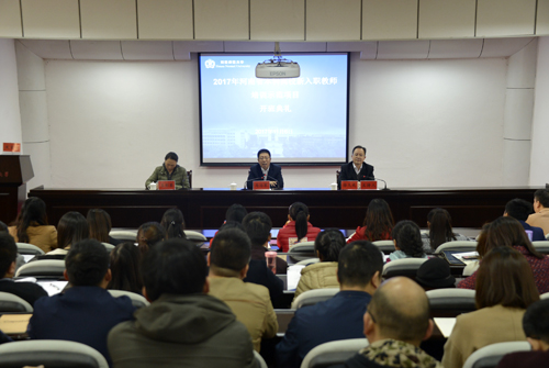 11月6日上午,受河南省教育厅委托,由我校承办的2017年河南省本科高校新入职教师培训示范项目第二期培训班开班典礼在勤政楼第四会议室举行。副校长马治军出席会议并讲。教务处负责人及相关人员参加了开班典礼。典礼由教务处处长徐久成主持。