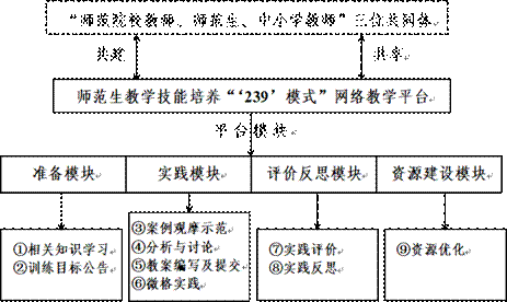 (3)“‘239’模式网络教学平台”教学技能培养模式构建 基于“互联网+教师教育”创新行动需求,引入开源的在线协作和学习环境Sakai,构建“239”模式师范生教学技能培养网络教学平台。 |