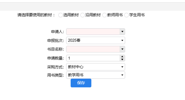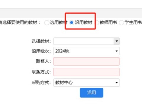 填报流程:登录教务系统---点击“个人事务”点击“教材填报”找到对应的课程点击“填报图标”进入填报界面。填报时可选择“选用教材”,或“沿用教材”。如更换新版教材,需先在教务系统中填写“新增教材”,提交审核通过后,方可进行教材填报。