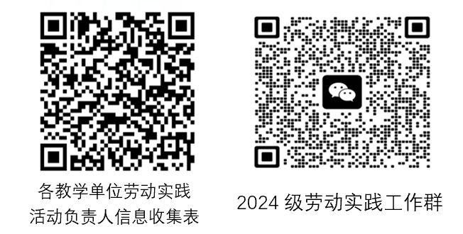 各学院(部)须指定1名工作人员(一般为2024级辅导员)作为2024级劳动实践的专项负责人,具体负责本单位劳动实践的组织协调工作。请于2025年9月1日前通过下方收集表填写负责人信息,并扫描下方二维码进入工作联络群。