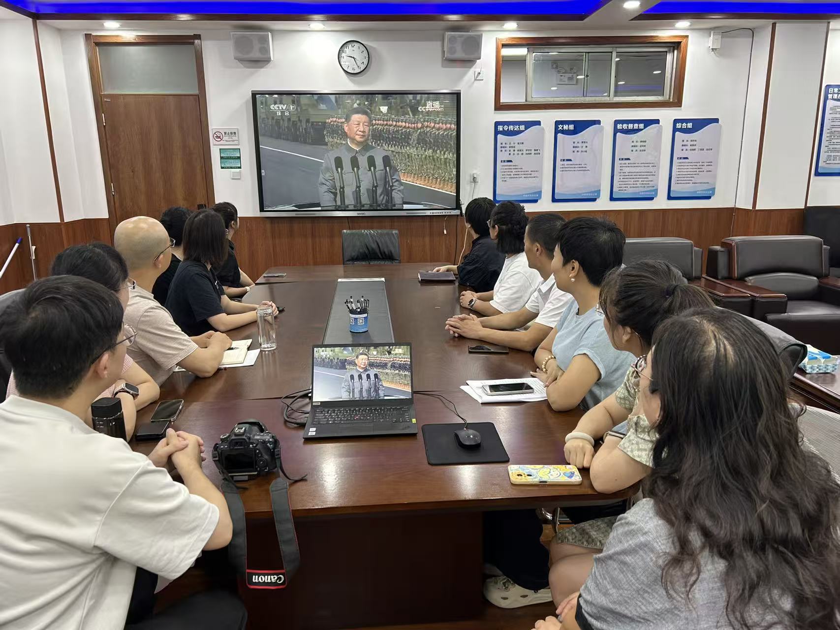 为弘扬伟大抗战精神,厚植爱国主义情怀,进一步增强党员干部的历史使命感和责任感,2025年9月3日,教务处党支部组织全体党员在文渊楼229会议室,集中观看了纪念中国人民抗日战争暨世界反法西斯战争胜利80周年大会直播,铭记伟大历史胜利,激扬深厚爱国情怀。