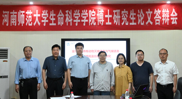 何玉晓博士以“全球陆栖脊椎动物灭绝债务与气候债务时空格局及影响因素研究”为题,对全球3万多种陆栖脊椎动物在过去一个世纪中所累积的灭绝债务和气候债务的时空格局及影响因素进行汇报。汇报结束后,答辩委员对相关问题进行提问,并给予指导性建议,该生回答准确,逻辑清晰,展现出优秀博士的水平。答辩主席张正旺教授对该论文给予了高度评价,并对该生工作量及科研能力给予了充分肯定。