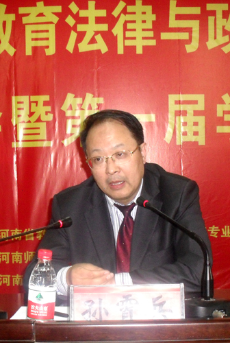 4月28日,河南省教育学会教育法律与政策研究专业委员会成立大会暨第一届学术研讨会在我校勤政楼第四会议室召开。教育部政策法规司司长孙霄兵,全国教育政策与法律研究会会长、首都师范大学学术委员会主任劳凯声,河南省教育厅巡视员张健,省教育厅政策法规处处长李敏,河南省教育学会副秘书长韩和鸣,我校副校长杨林,科研处处长、教育科学学院、教育法律政策研究所负责人等出席了开幕式。来自全省部分高校、中小学及教育行政部门的50多位会议代表及教育科学学院200余名师生参加大会并聆听报告。大会由科研处处长张现周主持。