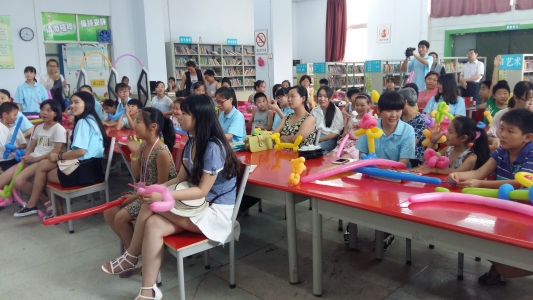 上善若水任方圆,水是如此,气球亦是如此。7月13日下午,教育学院的“书香育礼”教育关爱志愿服务队赴新乡市图书馆少儿部,举办“神奇的魔法气球”活动,与小朋友们一同感受“魔法气球”的魅力,2012级辅导员孙小文也一同前往。志愿者们都热情洋溢,斗志昂扬。