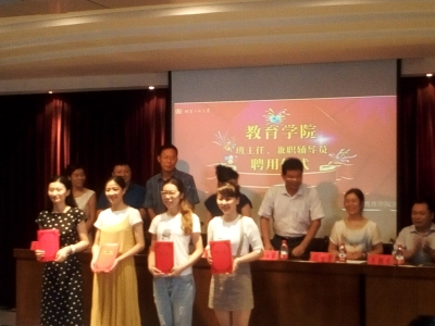 9月13日下午,教育学院在田家炳教育书院812教室成功举办班主任,兼职辅导员聘用仪式。教育学院党委书记李帅军,院长宋晔,副院长朱守宏、叶海智、段宝霞、李醒东、康淑霞出席会议。各年级班主任,兼职辅导员和学生代表参加了仪式。