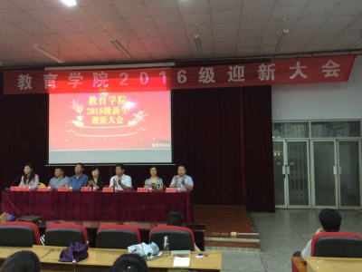 情暖师生,爱融师大。9月13日,教育学院在万人餐厅三楼多功能报告厅成功举办2016级迎新大会。我院党委书记李帅军,院长宋晔,副院长叶海智,段宝霞,李醒东,朱守宏与各年级辅导员出席本次活动。党委副书记康淑霞担任主持人。2016级新生们积极参与,认真聆听,现场座无虚席,热闹非凡。