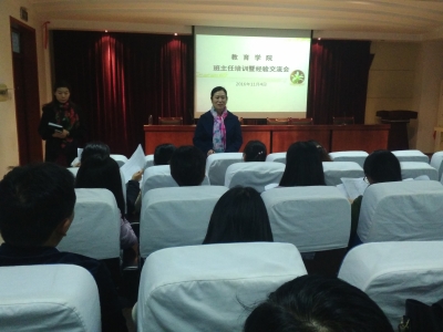 交流分享,共同成长。11月4日教育学院在田家炳教育书院举办班主任培训暨经验交流会。出席本次会议的有教育学院副院长段宝霞,党委副书记康淑霞以及2015级、2016级各专业班主任。