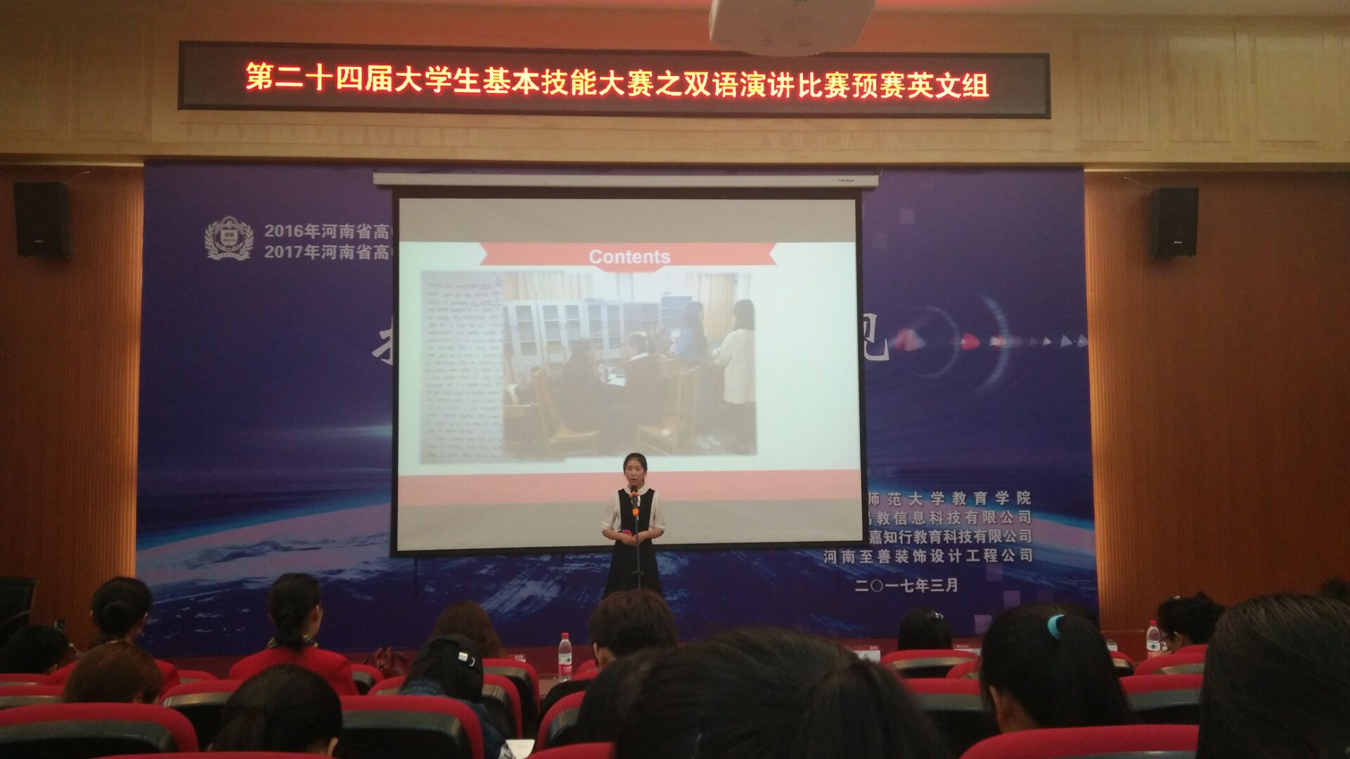 4月15日至16日,由校党委学生工作部学生处主办,教育学院承办的“青春好奋发,献礼十九大”第二十四届大学生基本技能竞赛——双语演讲赛预赛在我校东教B-302室举行。各学院部分学生观看了此次比赛。