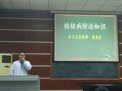 贾老师从不同的方面向大家讲述传染病的危害,她首先指出肺结核多会带来低热(午后为著)、盗汗、乏力等症状,呼吸道相应出现咳嗽、咳痰、咯血、胸痛、不同程度胸闷或呼吸困难等现象。紧接着,贾老师又阐述了肺结核传播的途径,像随地吐痰,打喷嚏等不经意的习惯都会使病毒传播。随即,贾老师与同学们分享了预防肺结核的方法:在传染源头控制,如果发现有肺结核病就需要立即治疗;喜欢养宠物的人也要特别关注,因为动物的身体里也有可能隐藏能够引起肺结核疾病的细菌;需要经常开窗换气,做到饮食有规律,最重要的还是多运动,增强体质。不仅如此,贾喜臣老师还给同学们介绍了艾滋病的三种传播方式及其危害性,以望警醒广大学生。讲座最后,贾老师告诫同学们一定要养成良好的生活习惯,保持健康的生活方式,从而减少疾病的发生。