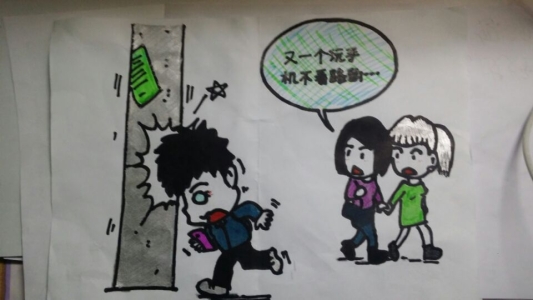 5月2日晚,我院评委对参赛作品进行评选,参赛者们别出心裁的作品让评委们眼前一亮。经过评选,许多优秀作品脱颖而出。其中2016级教育技术学专业胡佳钰同学的作品描绘了某同学因为走路看手机而撞到柱子上的画面,此作品告诫那些同学要做事情要一心一意,不能分心,同时,为走路玩手机的同学敲响了警钟,令人深思。2016级小学教育专业的张媛媛同学的画作讲述小偷进寝室偷电脑却因为心虚频频回头的故事,其作品黑白相间,线条流畅,贴近生活,警醒大家寝室安全问题同样不容忽视。此外,王姣阳同学的作品也独具匠心,她将文字与画作巧妙结合,旨在提醒大家牢记防火知识。
