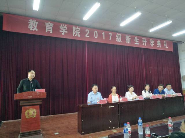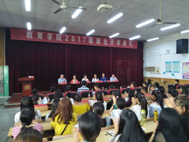 金秋九月,丹桂飘香。9月11日中午,教育学院于万人餐厅三楼多功能报告厅举办2017级新生开学典礼,教育学院院长宋晔,党委副书记康淑霞,副院长段宝霞、叶海智、李醒东、朱守宏,党委办公室主任张一帆,院办公室副主任张静,教学秘书崔振成,各系系主任、团委书记、各年级辅导员等以及我院90届校友出席本次典礼。我院2017级82名研究生和416名本科生参加典礼。