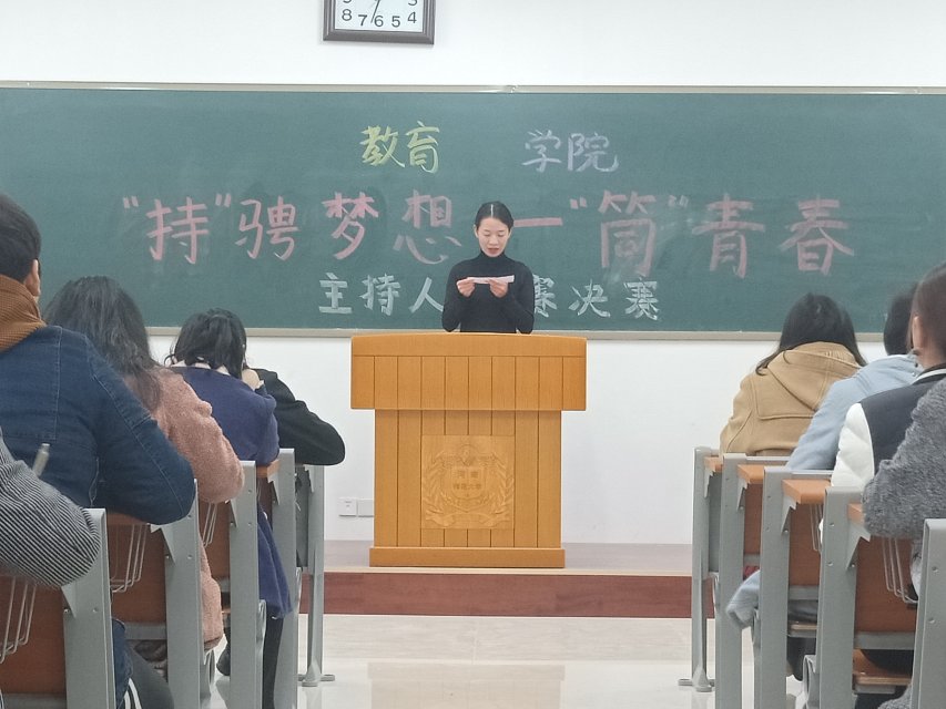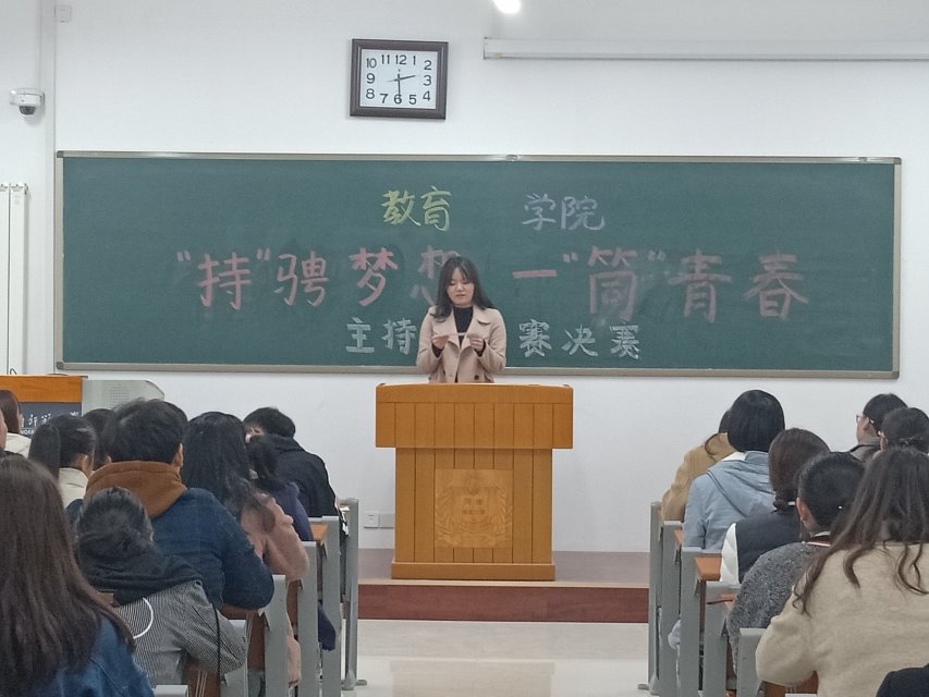 1124号,教育学院团委学生会女生部于东区综合教学楼118教室举办主持人大赛决赛。