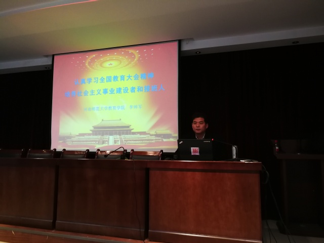 为深入学习贯彻全国教育大会精神,12月11日下午,教育学院在田家炳812召开了以“认真学习全国教育大会精神,培养社会主义事业建设者和接班人”为主题的学习报告会,党委书记李帅军作专题宣讲报告,百余名师生代表参加了培训学习。