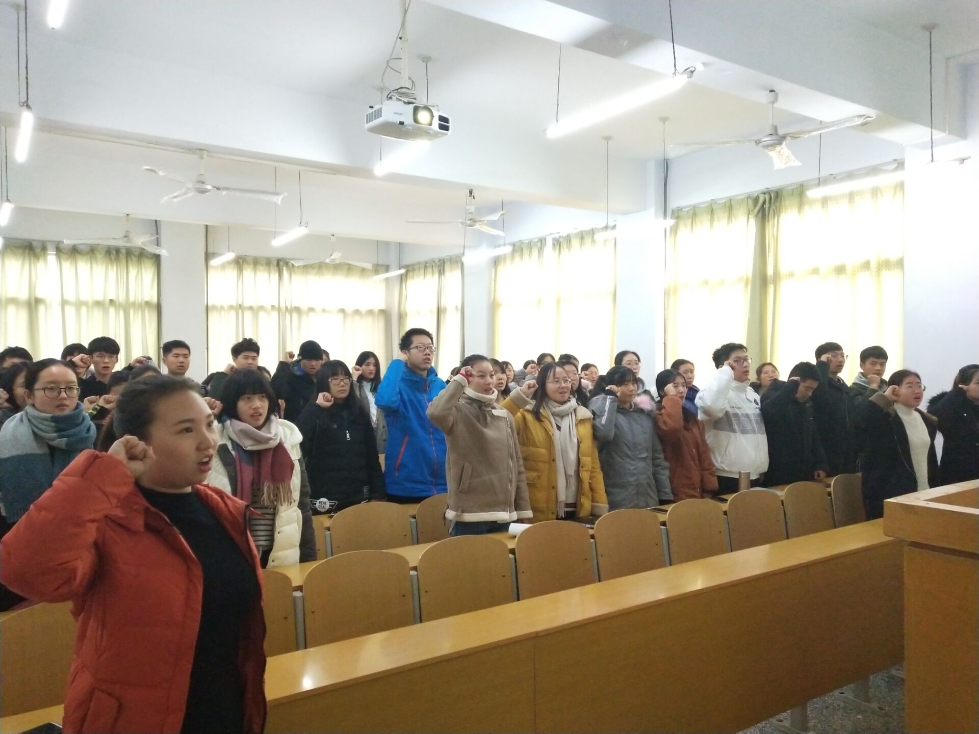 活动伊始,何姗姗指出全体共青团员自觉学习“一二九精神”,做有理想有抱负的大学生。随后,她分别从追寻、启示两个方面对“一二九”事件的背景、经过、结果、及意义进行详细解说,并引用毛泽东主席和习近平总书记的话语对其重要意义进行进一步说明。最后,全体同学起立,宣读入团誓词,重温入团热情