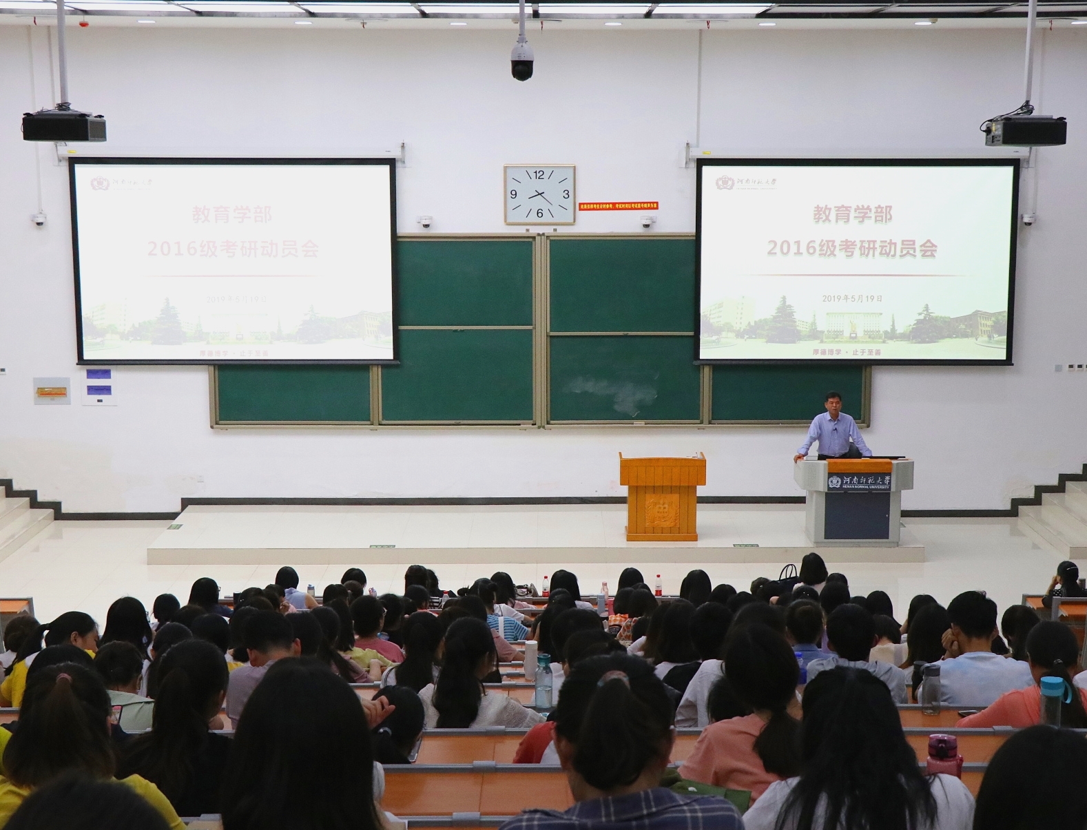 为鼓励学部学生积极考研,明确考研方向,5月19日,教育学部于东区综合楼127教室举办2016级考研动员大会,教育学部学部党委书记李帅军、部长宋烨、党委副书记康淑霞、2016级辅导员及2016级全体同学参加此次动员大会,大会由党委副书记康淑霞主持。