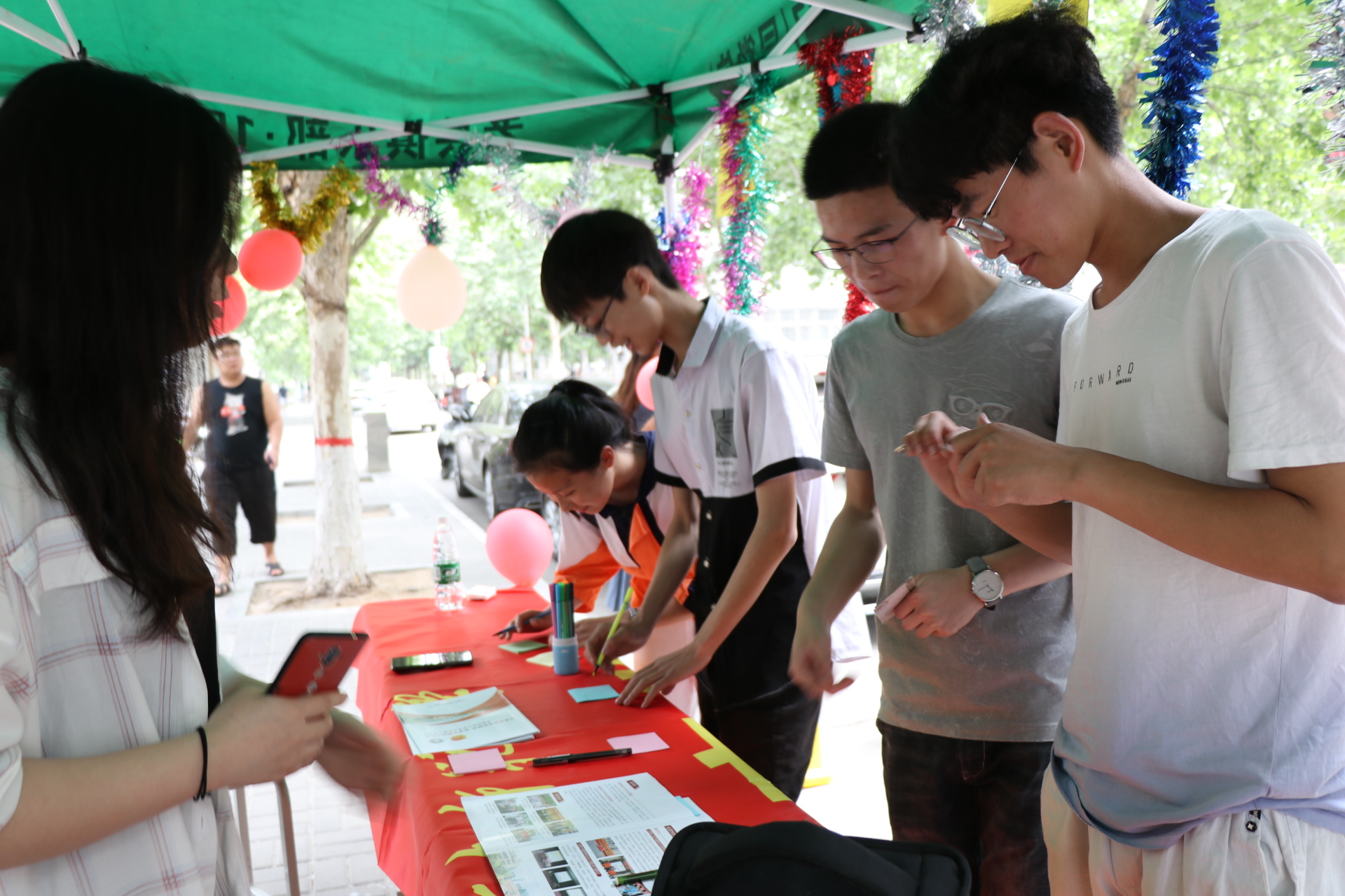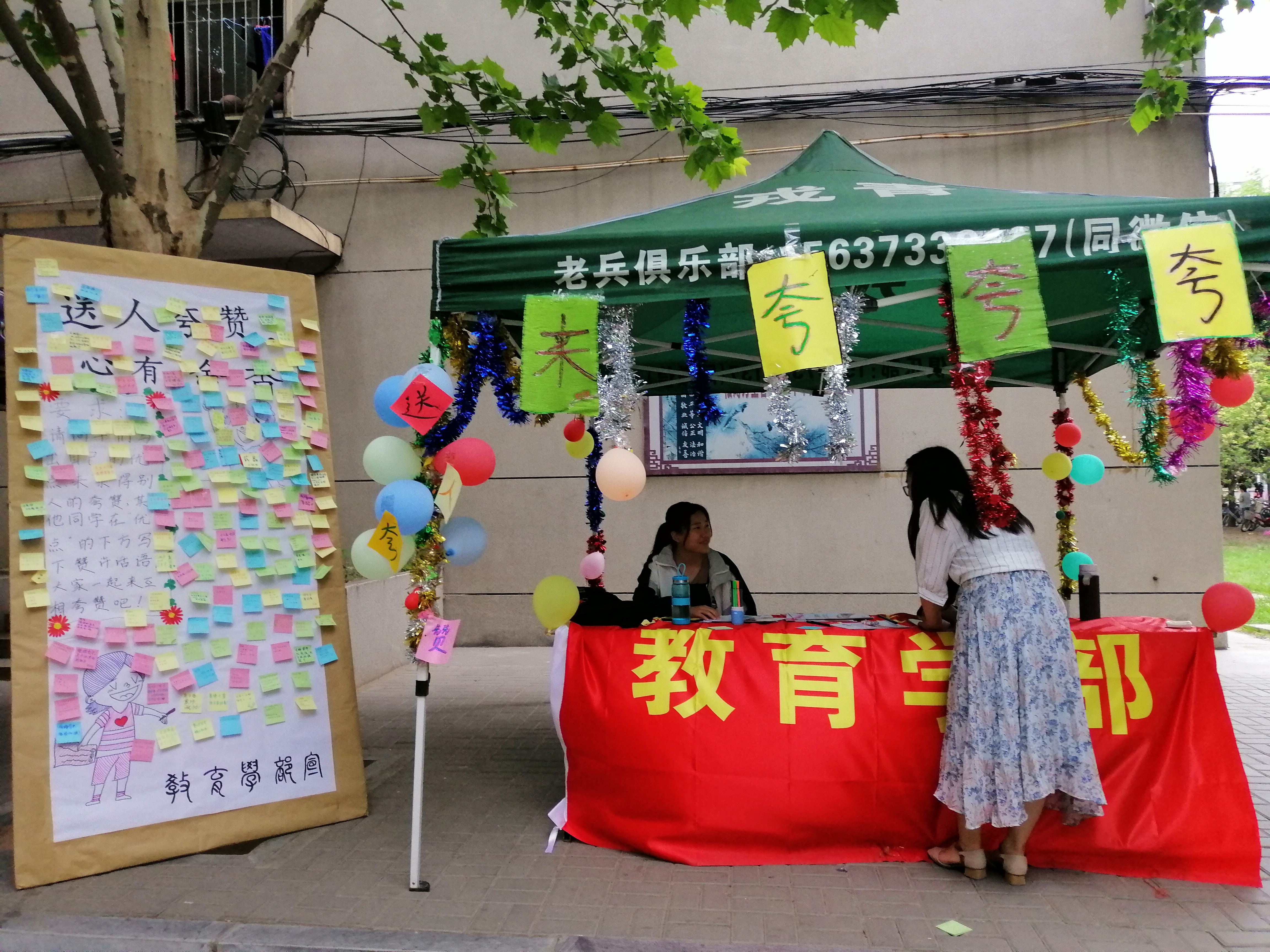 在全国大学生心理健康日到来之际,教育学部于5月18日在万人餐厅附近开展了“呵护心灵,传递正能量”主题学生互夸活动。