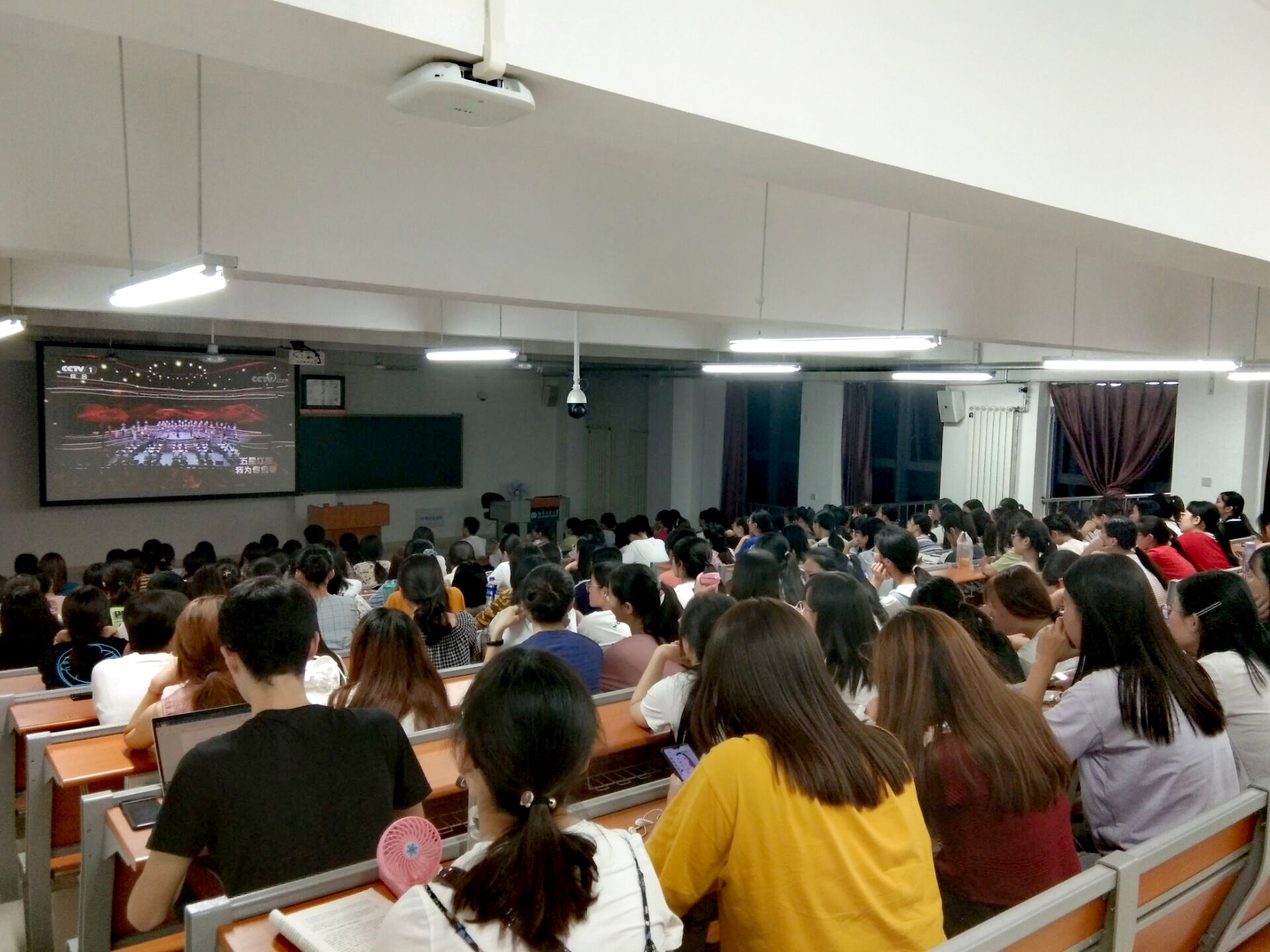9月1日晚,教育学部组织学生于东区综合楼506教室和509教室集中观看以“五星红旗,我为你自豪”为主题的2019年《开学第一课》专题节目。教育学部党委副书记康淑霞、团委书记孙小文、各年级辅导员及学部300余名同学共同观看此次直播。