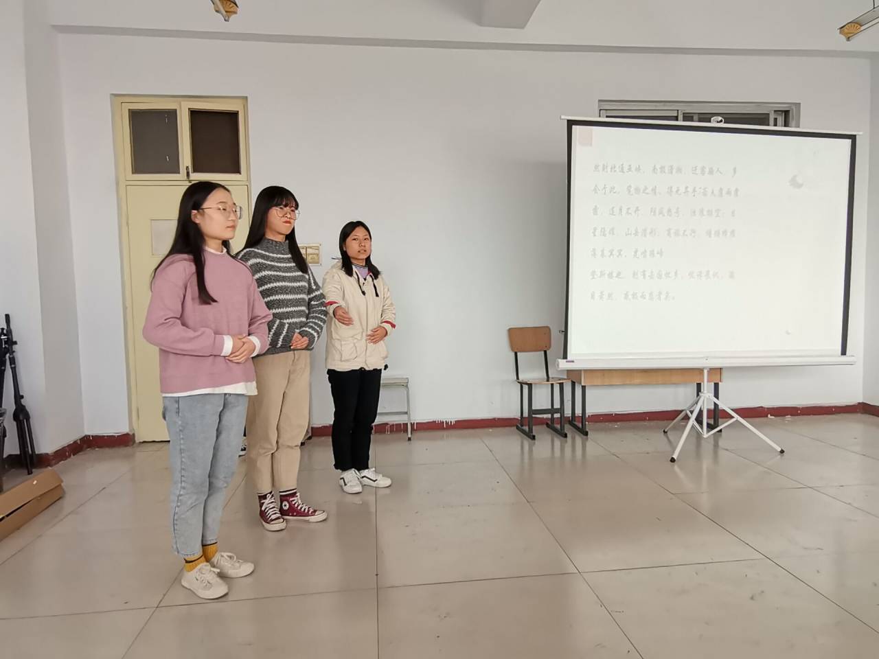活动期间,同学们神采奕奕,铿锵有力。其中,郑晓慧同学及小组成员另辟蹊径、大胆创新,围绕主题节选出中华诗歌精华,并与现代经典有机结合,为观众带来扣人心弦的“听觉盛宴”——《我同诗歌醉一场》;以张之睿同学为代表的小组以抑扬顿挫的语调、扎实的朗诵功底生动演绎中华经典,韵味十足,赢得在座评委的阵阵掌声,拿到本次比赛最佳成绩。