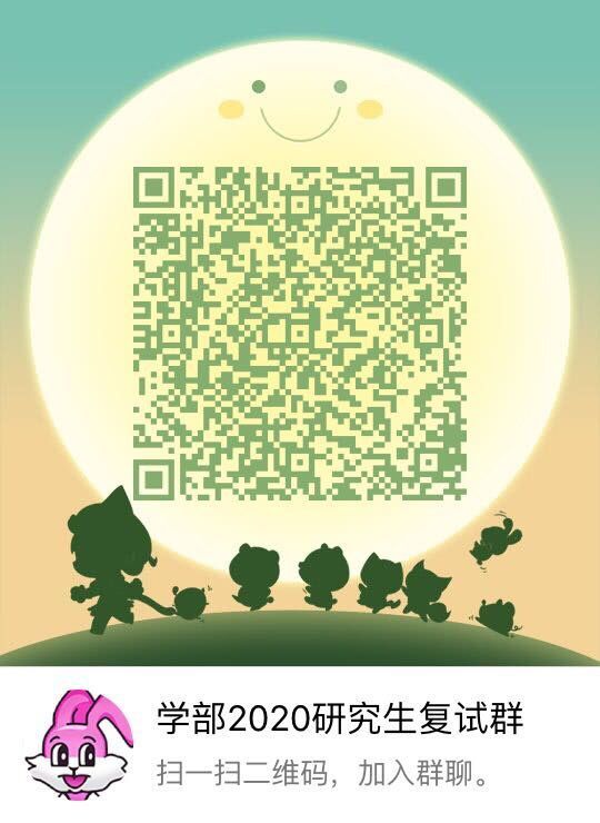 2020年研究生招生考试进入我学部复试人员名单已确定,请各位考生登录伟德官网下载苹果版研究生招生管理系统,查看是否进入复试。进入复试的考生请加QQ597661515或扫描下方的二维码进群,届时会有重要通知在群里发布,请抓紧时间进群。