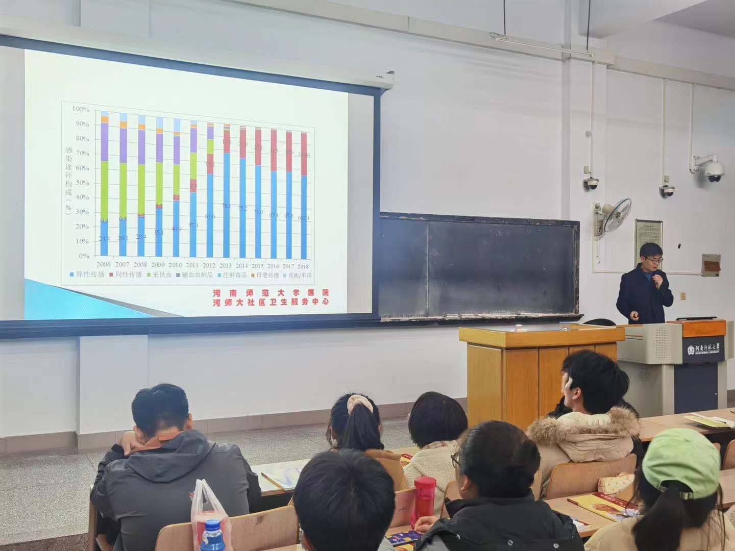 冬季是各种传染病的高发季节,为增强学生的传染病防控意识,保障学生身体健康,教育学部于11月20日晚在新554教学楼103教室举行以“中国健康,师生健康”为主题的河师大社区卫生服务中心健康教育大课堂活动。校医院医师柳保强授课,学部2020级全体学生到场聆听。