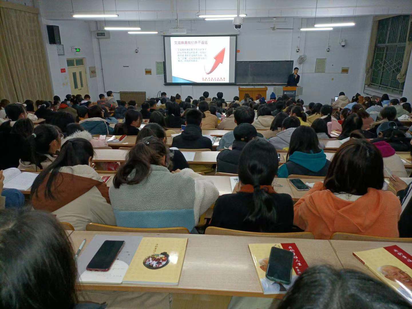 活动中,柳保强以新冠肺炎疫情为例,通过师生互动、有奖问答等形式,简述传染病的流行过程及预防途径,极大程度上调动了同学们的积极性。他以校园重点传染病中多发的乙肝、艾滋病、肺结核三种疾病为切入点,分别阐述了三者防控的差别,并为同学们科普防控传染病的普遍原理及有效控制传染病流行的手段。同时,他指出当今大学校园逐渐发展为艾滋病毒滋生的温床,高校学生正处于迈向成人社会的关键时期,应当洁身自爱,保护自己,特别是要正确认识艾滋病毒,提升自己的安全意识。