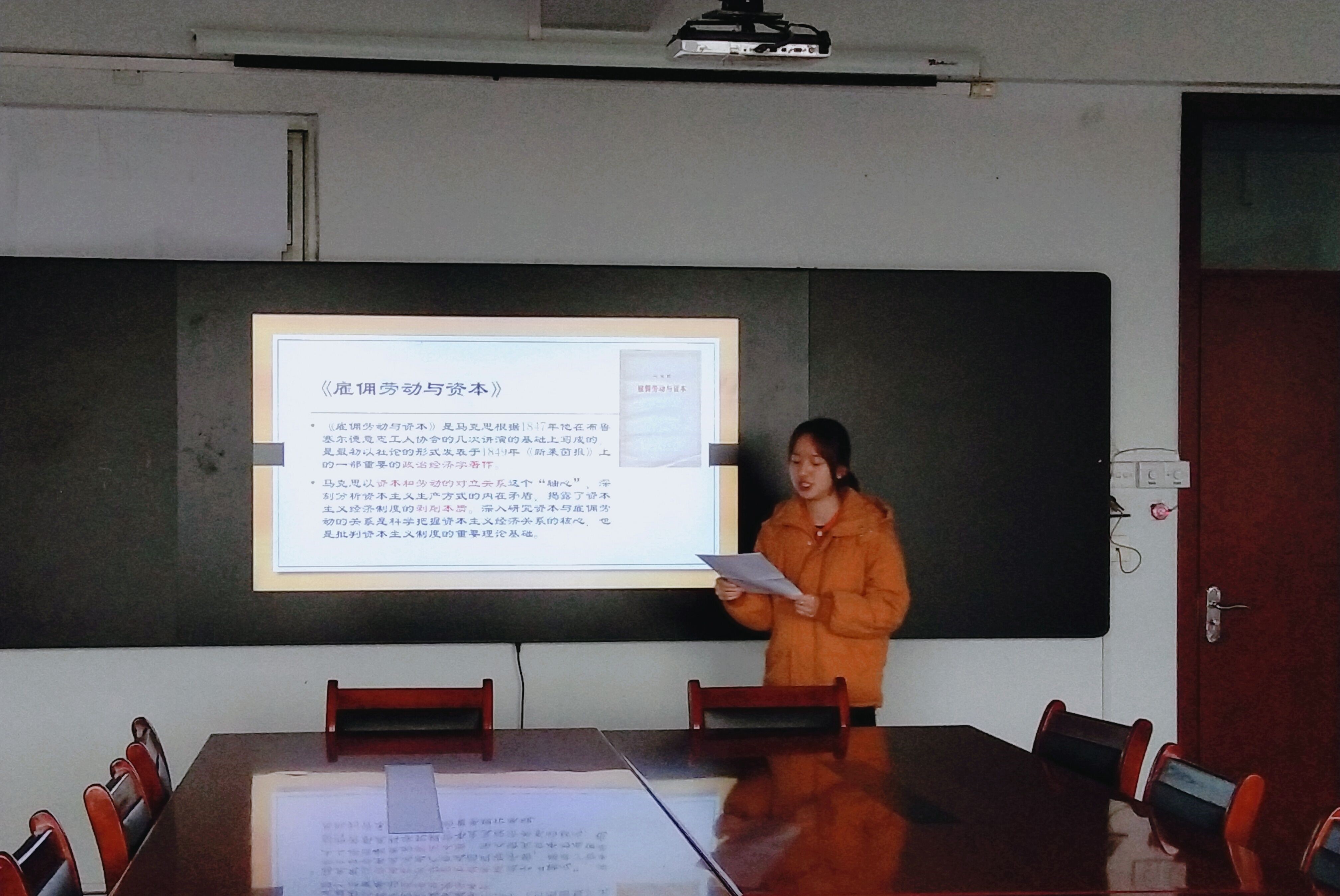 比赛中,每位参赛选手各展风采,结合PPT分享了自己阅读经典的感悟与思考。其中,2018级学前教育专业贾佳分享读《共产党宣言》后的感想,PPT制作精美,作品内容条理清晰。2018级心理学专业郭浩然演讲仪态自然大方,从容流畅地向我们分享了《德意志意识形态》,充分体现了大学生对历史的理解与感悟。2019级学前教育专业郝嘉怡从《湖南农民运动考察报告》出发,讲解农民运动历史,深入分析“相信群众、依靠群众、发动群众”的思想,赢得同学们的赞同。评委们对参赛同学的优秀表现提出赞扬,同时对演讲方式与展示的内容提出建议。