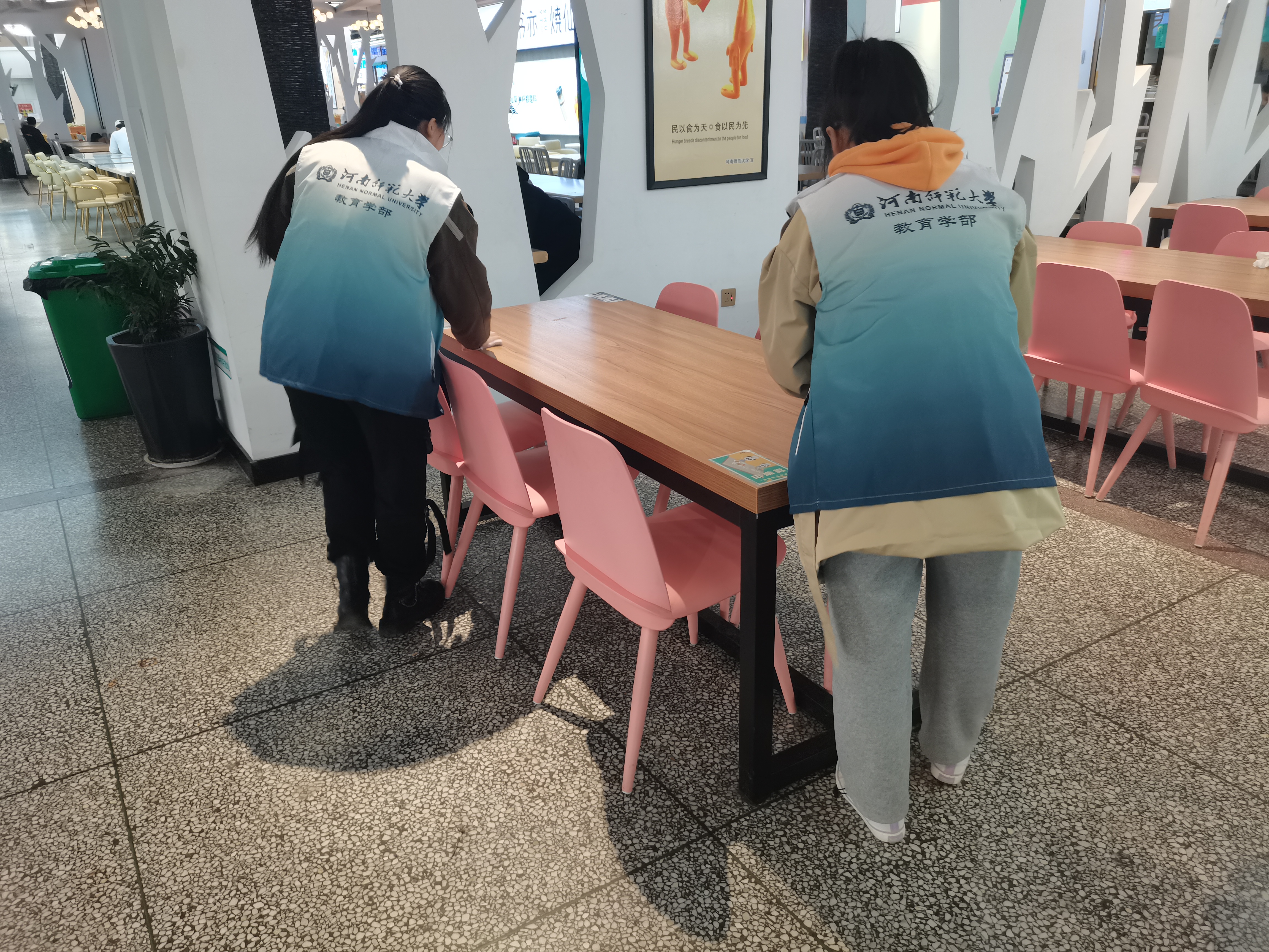 为纪念“学习雷锋纪念日”和“中国青年志愿者服务日”,大力弘扬雷锋精神,提升大学生志愿服务精神,提高同学们文明就餐意识,3月19日中午,教育学部组织志愿者在万人餐厅二楼开展志愿服务活动。