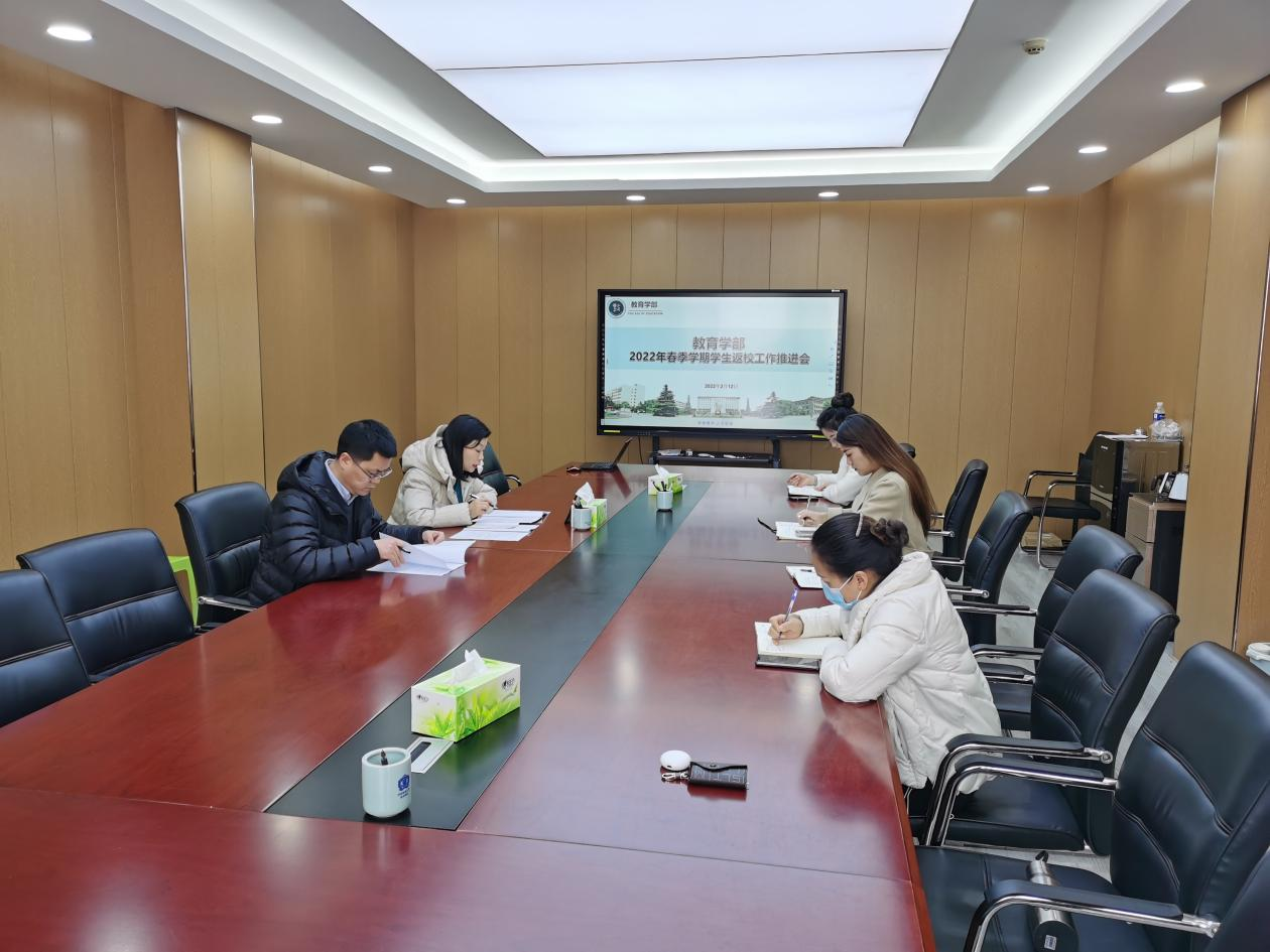 为确保春季学期学生安全有序返校,2月12日下午,教育学部在田家炳教育书院801会议室召开2022年春季学期学生返校工作推进会。会议采用线上线下相结合的形式,学部党委书记陈勇、副书记康淑霞和全体专兼职辅导员参加会议。