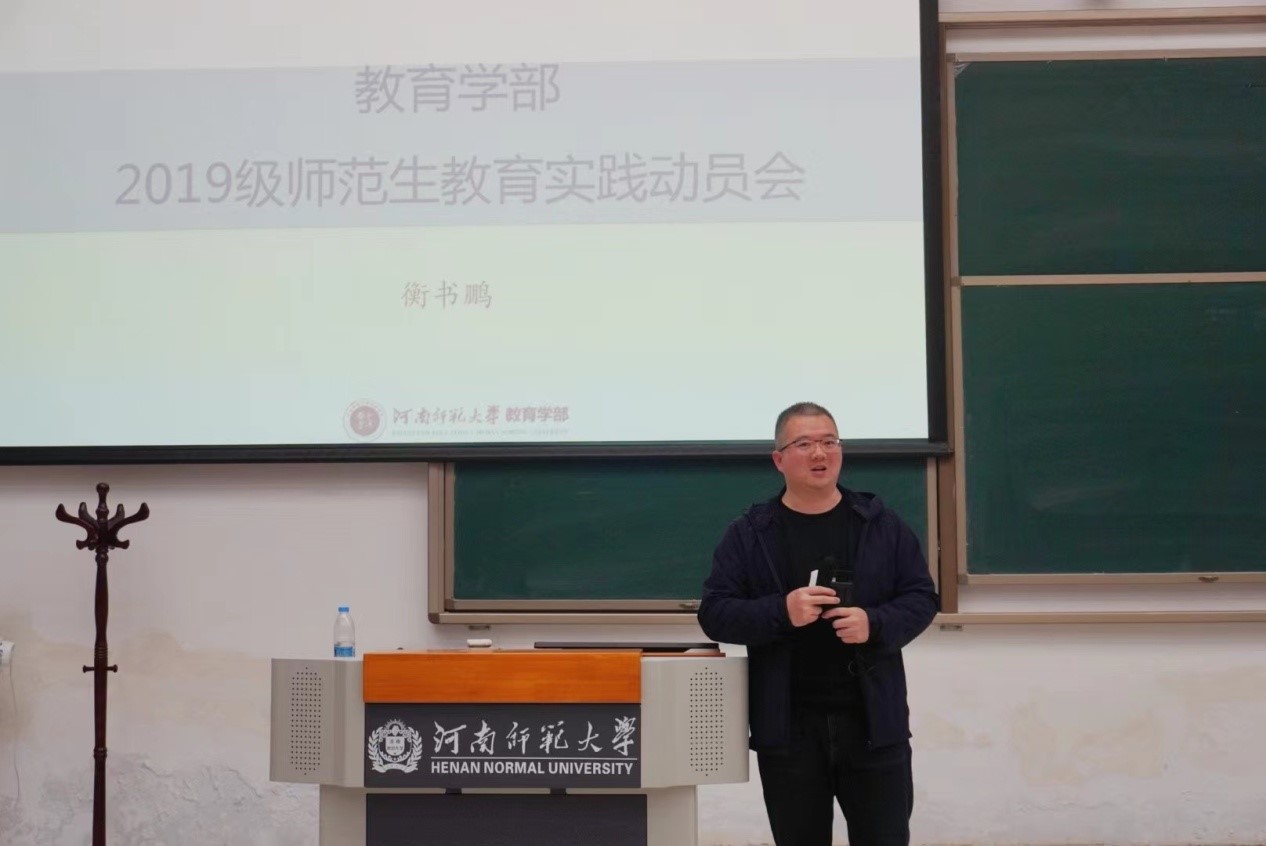 为推进教育实践工作的顺利开展,引导学生做好教育实践前的各项准备,3月4日上午,教育学部在文昌楼102教室召开“2019级师范生教育实践动员会”。教育学部教学秘书衡书鹏、2019级辅导员崔新媛及全体2019级本科生参加了本次会议。