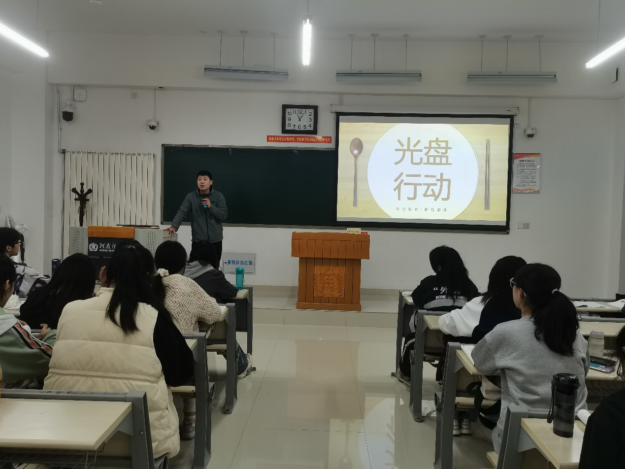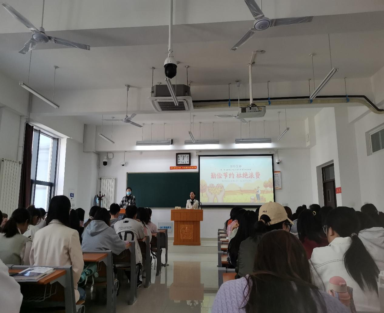 2021级开展“厉行勤俭节约,拒绝餐饮浪费”主题班会