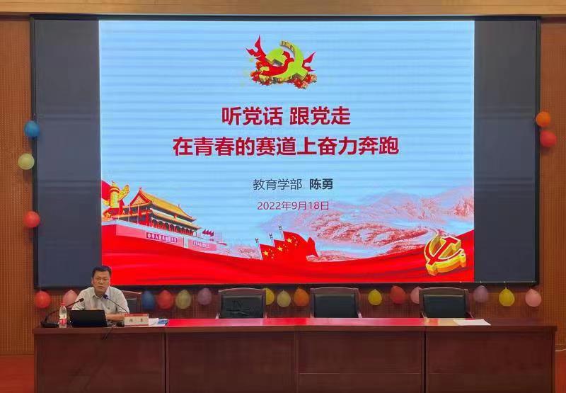 为做好2022级新生入学教育,9月18日晚,教育学部党委书记陈勇在求是中楼302报告厅为2022级新生上秋季开学思政第一课。