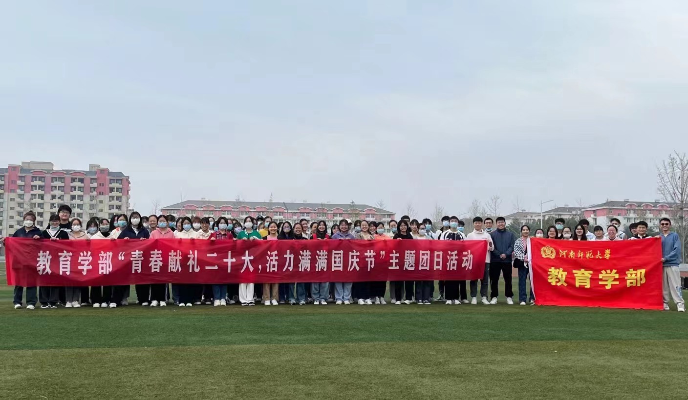 正值党的二十大胜利召开之际,为深化爱国主义教育,激发同学们的爱国主义情感,使同学们在校期间度过一个愉快、安全、充实且有意义的国庆假期,10月6日,教育学部在东区田径场举行了以“青春献礼二十大,活力满满国庆节”主题团日活动。